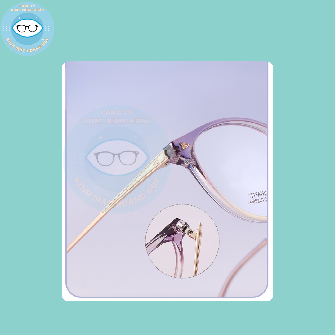 _Gọng kính được làm từ nhựa kết hợp với titanium, bền bỉ và nhẹ, mang lại cảm giác thoải mái khi đeo trong thời gian dài.